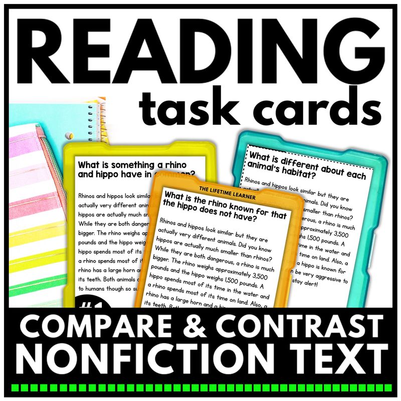 These nonfiction compare and contrast task cards are designed to give teachers maximum flexibility while providing students with meaningful practice.