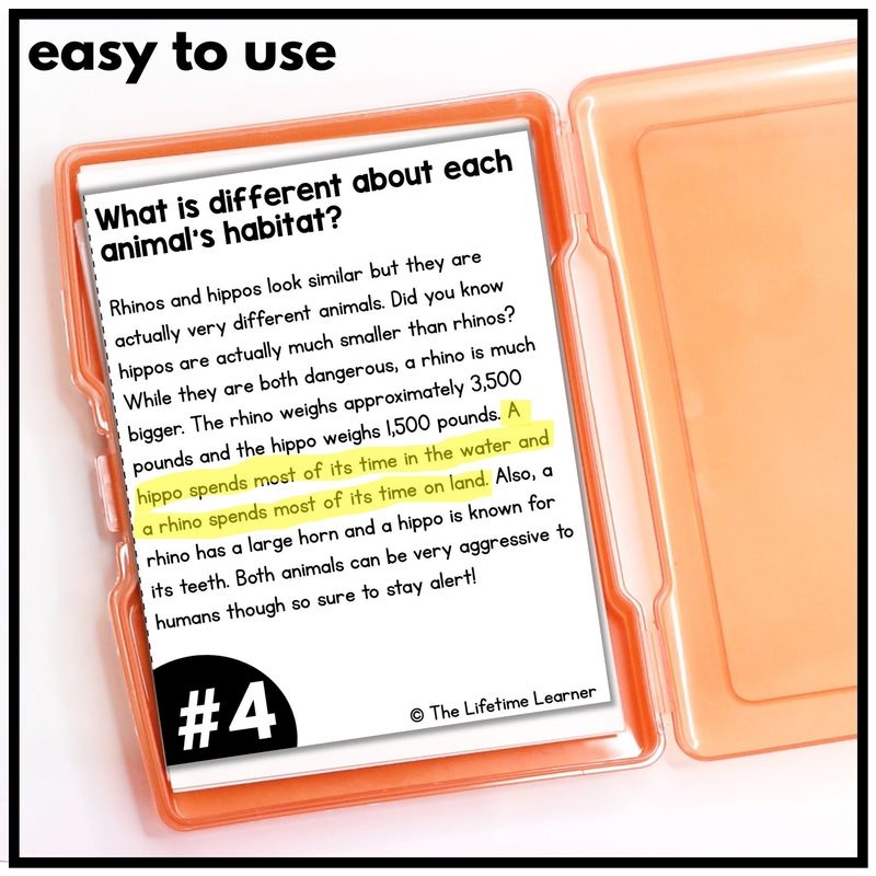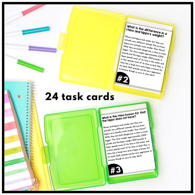 Because these cards use nonfiction animal passages, students gain experience identifying how informational texts are structured and connected. They practice spotting similarities and differences in clear, engaging contexts that make sense to them.