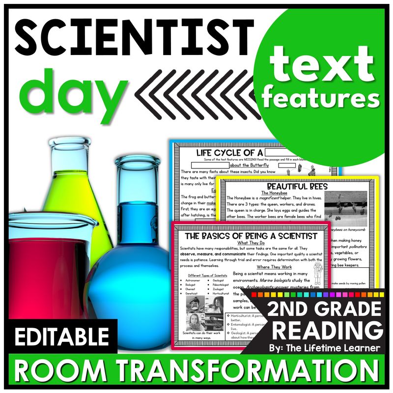 Let’s become scientists in this engaging 2nd grade room transformation or reading escape room! Students get to identify nonfiction text features in a FUN way with tons of science themed activities! This scientist classroom transformation has 10 text feature reading comprehension passages with questions and activities students will ENJOY completing! It’s the perfect activity to use during a text features unit. Print, digital, and editable versions are included.