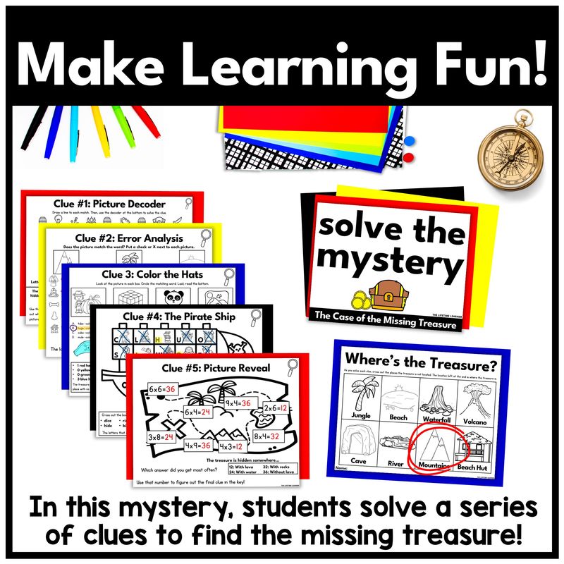 Introduce the Story – Tell students the premise; they can solve math clues to uncover the answer.