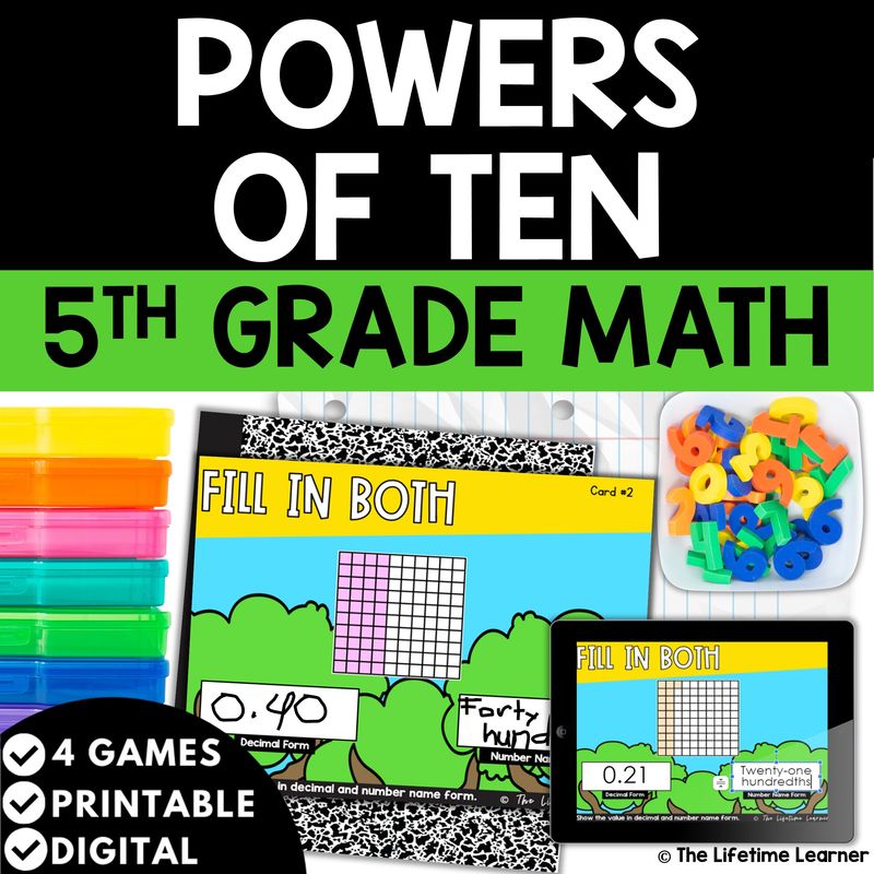 These powers of ten 5th math task cards are an engaging alternative to standard worksheets. Instead of completing a page of problems, students play through games that promote reasoning, collaboration, and confidence.