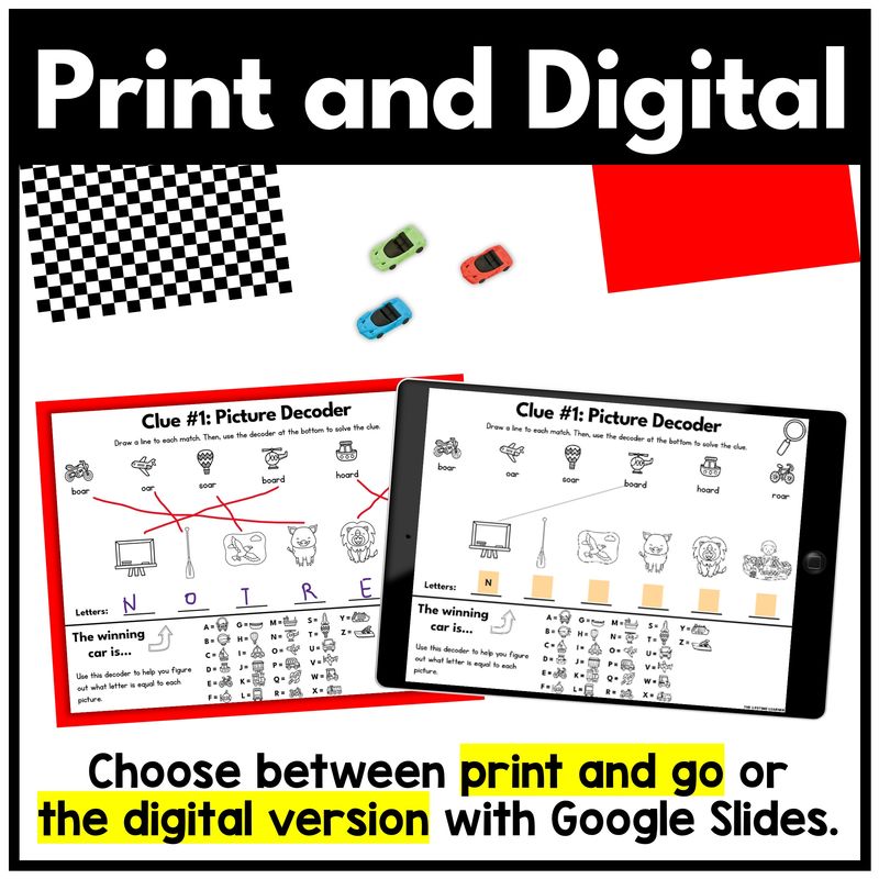 Both versions make it simple to keep students engaged during your race car unit or room transformation.