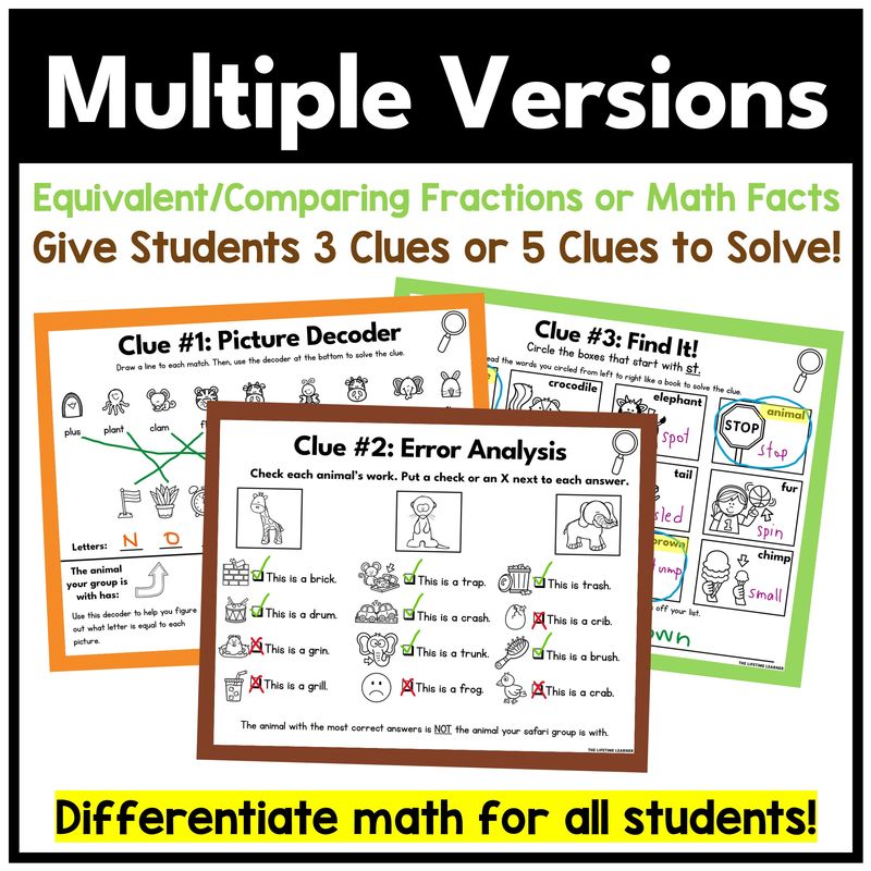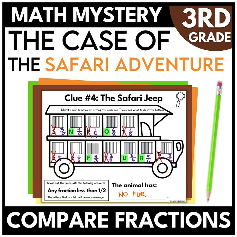 Safari math mystery 3rd grade activities are the perfect way to practice the skill: comparing fractions. This resource turns learning into a storyline that feels like a third grade math escape room—without the stress of hours of teacher prep. Teachers simply print and go (or assign digitally), and students solve math clues to crack the case.
