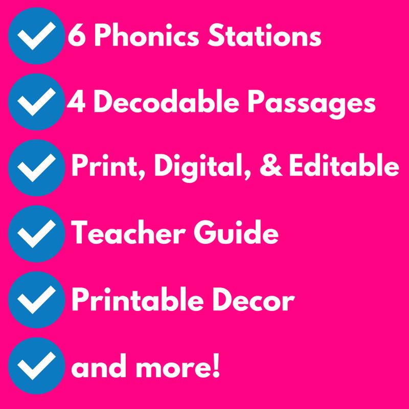 Let students move around the room and complete each center. They can be completed in any order. Some centers also include phonemic awareness skills such as rhyming, identifying sounds, blending phonemes, phoneme addition/removal/substitution, and more!