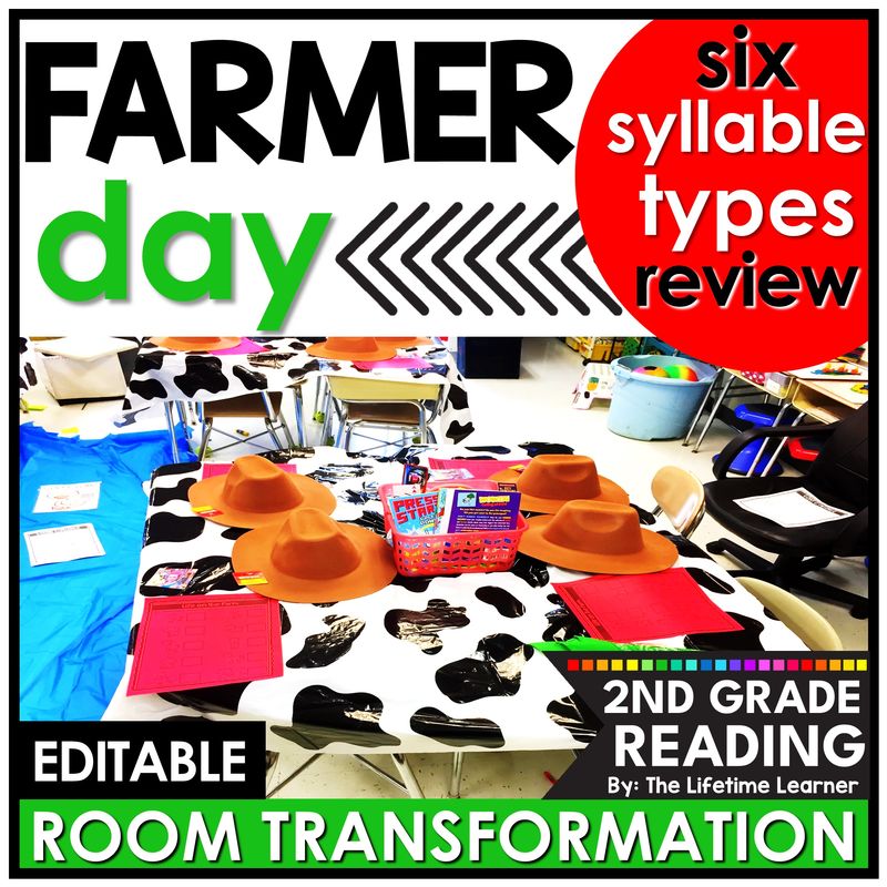 It’s farmer day in this engaging 2nd grade room transformation or reading escape room! Second grade students review the 6 syllable types (vowel team syllables, open and closed syllables, Vce syllables, consonant + LE, and r-controlled words) in a FUN way with tons of farming activities! This farm classroom transformation has decoding multi-syllable word worksheets, phonics activities, and 2nd grade decodable readers. It’s the perfect phonics activity to use on a farm animals day. Print, digital, and editable versions are included.