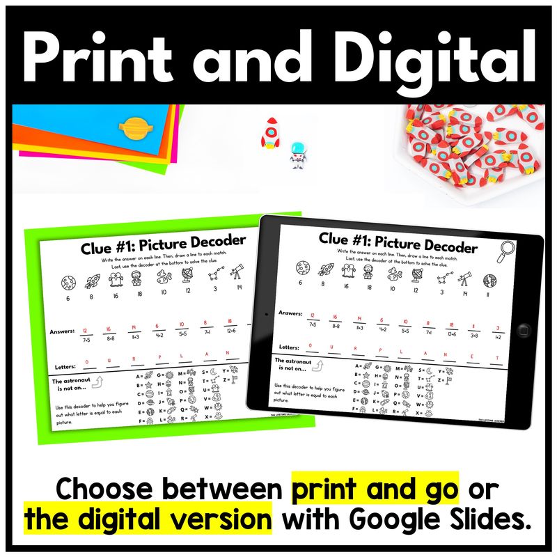 This space math fact mystery is a fun way to practice addition, subtraction, multiplication, and division facts across grades K–5. With multiple versions, two mysteries included, and both print and digital formats, it’s flexible enough to fit any classroom. Students will love solving the clues to reveal the final answer, and teachers will love how quick and easy it is to use.