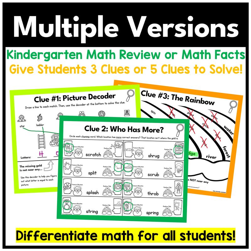 Teachers want math review activities that keep students engaged while building mastery. This kindergarten St. Patrick’s Day math mystery transforms routine worksheets into an interactive game where every problem brings them closer to solving the mystery.