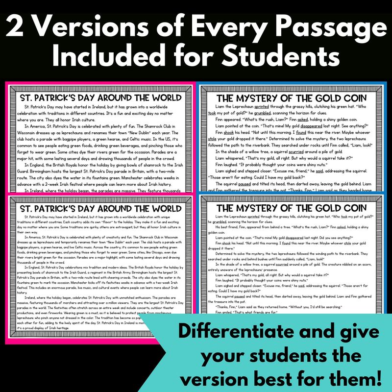 - There are 2 versions of every reading passage: shorter and longer versions so you can differentiate for every student!