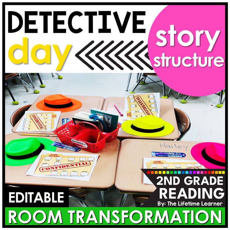 Let’s become detectives in this engaging 2nd grade room transformation or reading escape room! Students review second grade story structure and story elements (problem, solution, setting, plot) in a FUN way with tons of mystery activities! This detective classroom transformation has 10 reading comprehension passages with questions and activities students will ENJOY completing! It’s the perfect activity to use on a detective theme day. Print, digital, and editable versions are included.