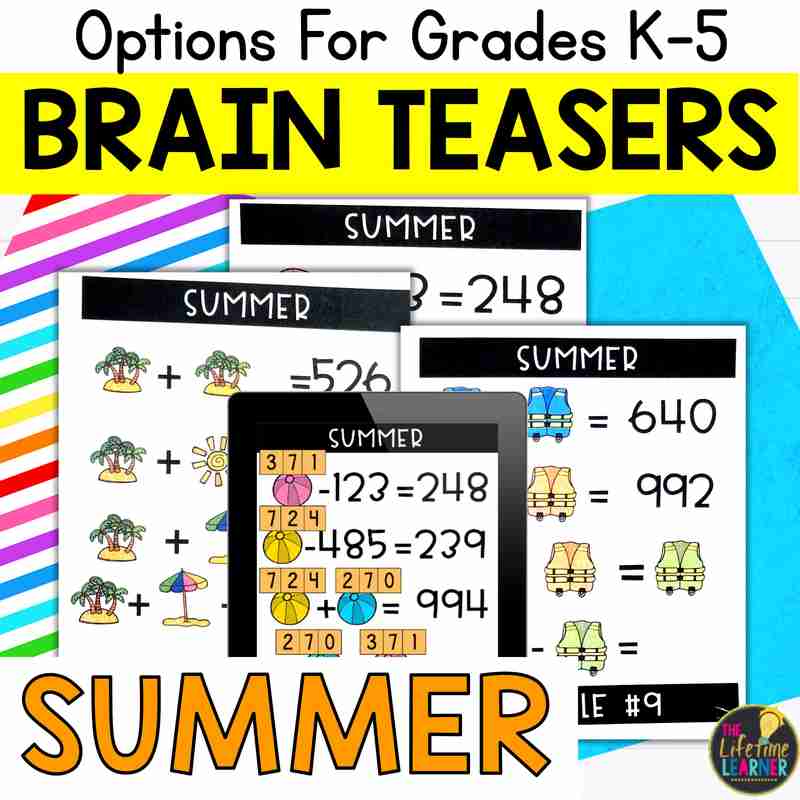 These Summer Math Brain Teasers fit into many classroom or home learning schedules: