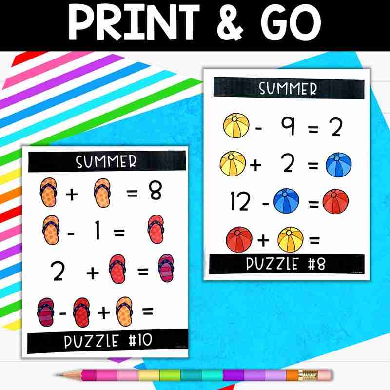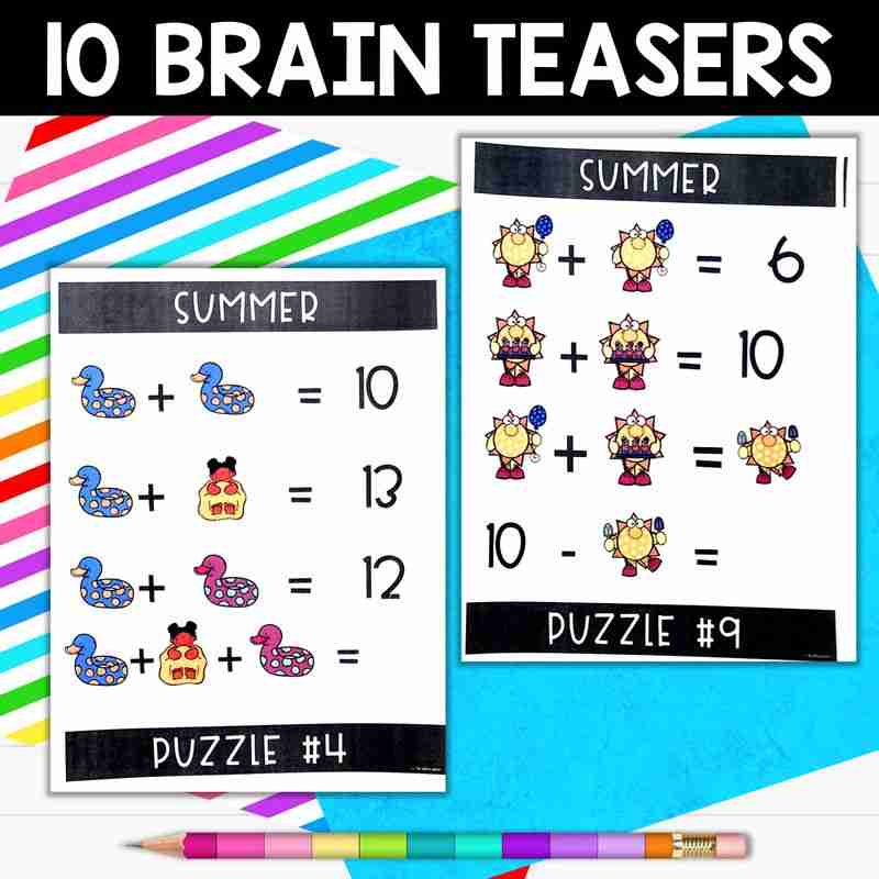10 summer-themed logic puzzles / brain teasers designed to engage and build fluency