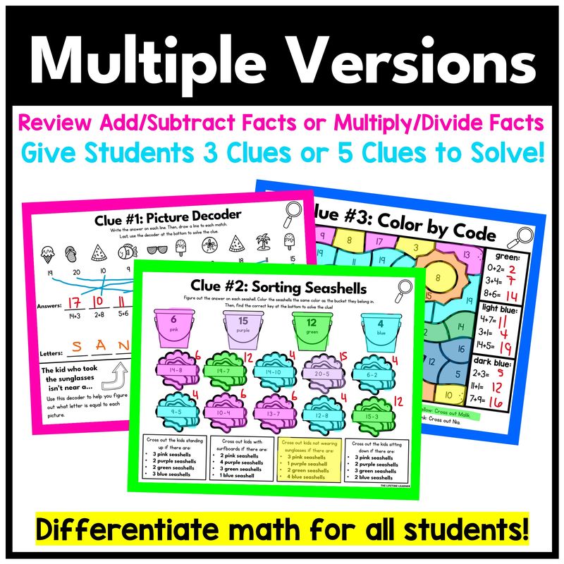 This summer math fact mystery goes beyond drills—it turns practice into an interactive experience.