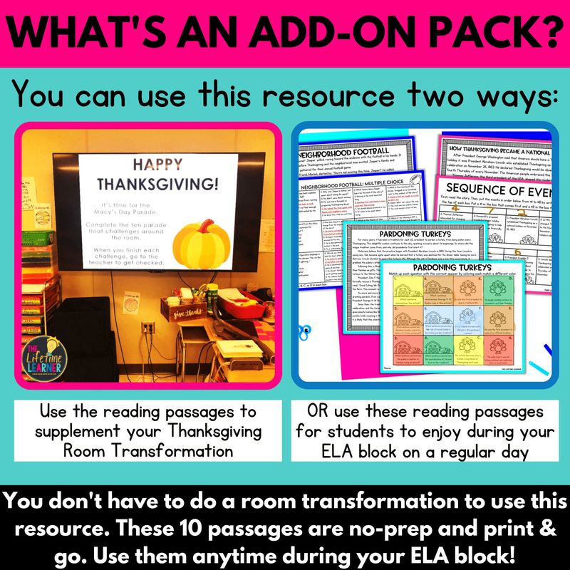 Reading ADD ON PACK for Thanksgiving Classroom Transformation