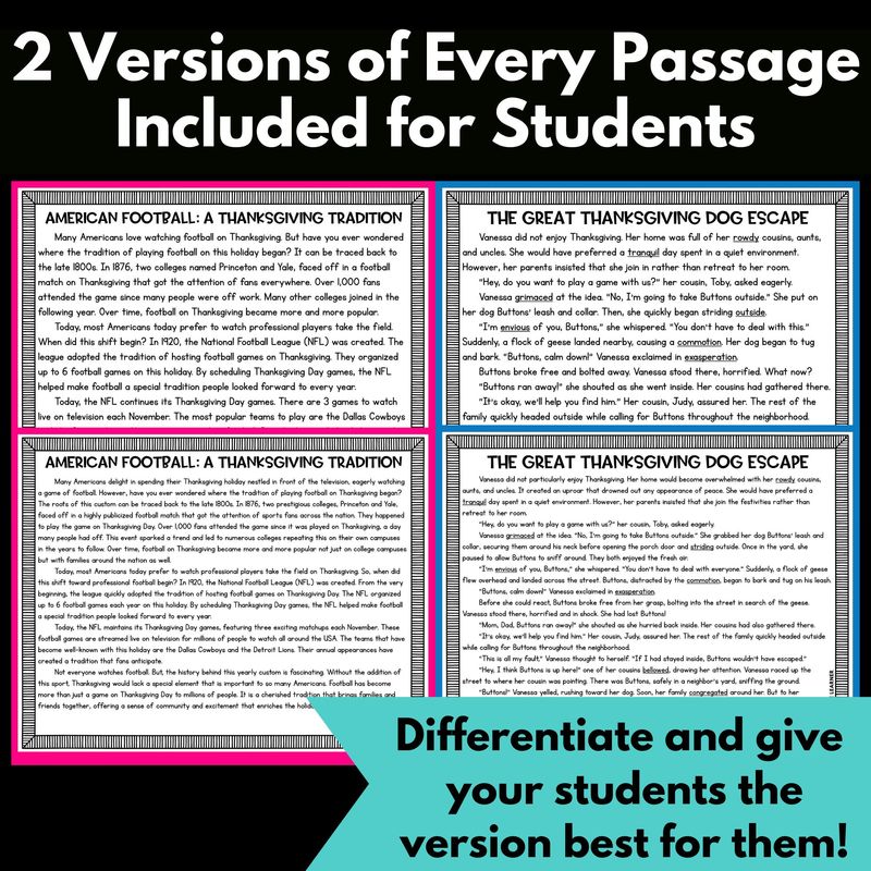 - There are 2 versions of every reading passage: shorter and longer versions so you can differentiate for every student!