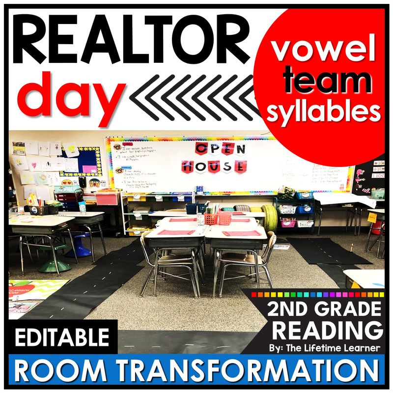 It’s realtor day in this engaging 2nd grade room transformation or reading escape room! Second grade students review vowel team syllables in a FUN way with tons of home themed activities! This neighborhood classroom transformation has vowel team syllable worksheets, phonics activities, and 2nd grade decodable readers. It’s the perfect phonics activity to use on a realtor day. Print, digital, and editable versions are included.