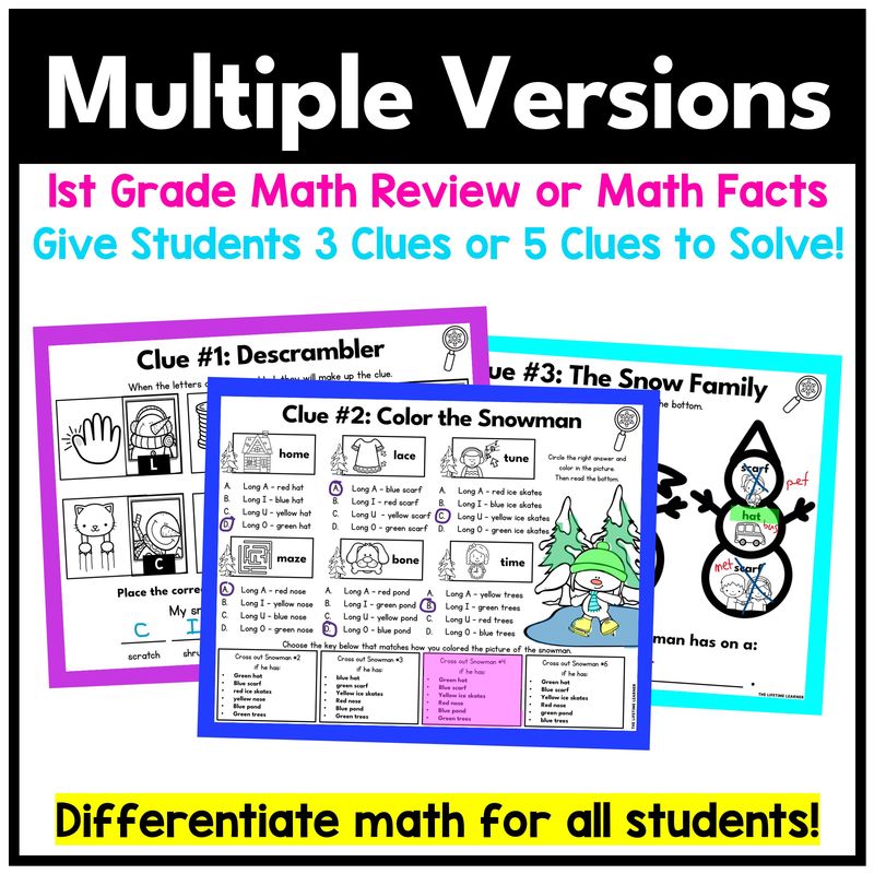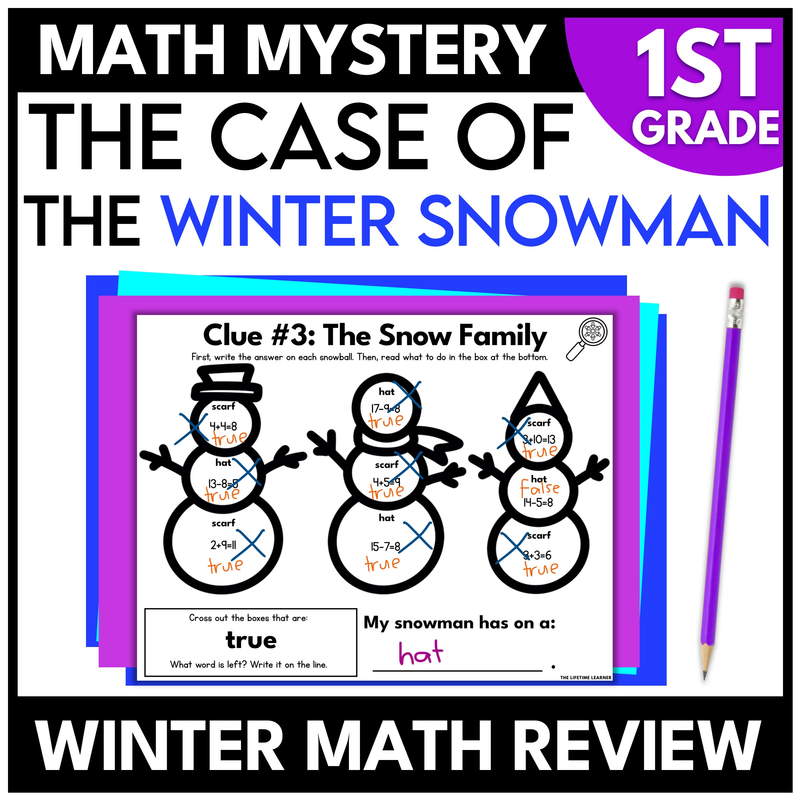 Teachers want math review activities that keep students focused while practicing skills. This first grade winter math mystery transforms worksheets into an interactive game where every problem brings students closer to solving the mystery.