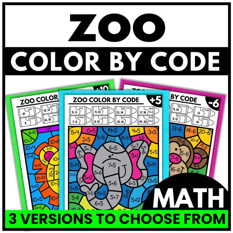 This Zoo color by code math resource is available in three versions, each with 28 pages of print-and-go practice: