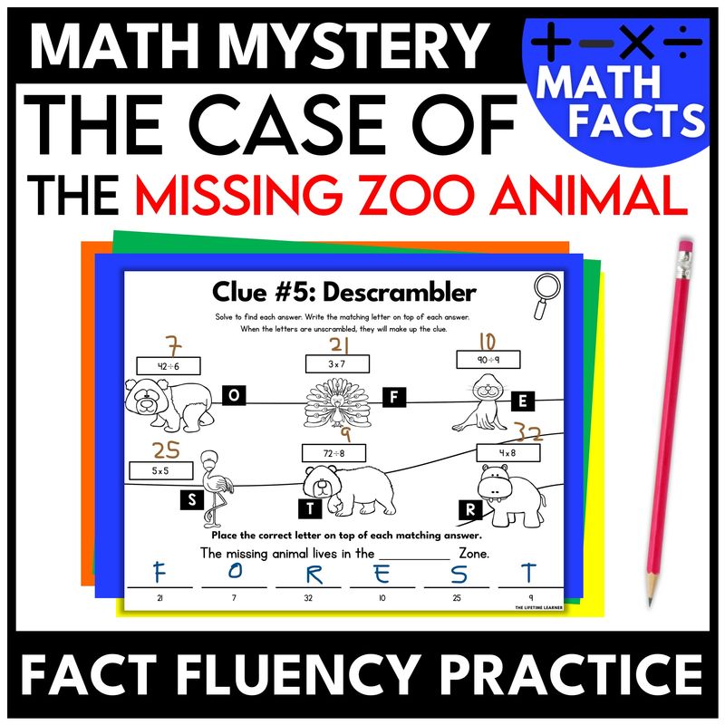 Teachers want math fact fluency practice that doesn’t feel boring or repetitive. This zoo math fact mystery transforms drills into an interactive game where every problem solved brings students closer to discovering the culprit.